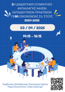Δείτε το παρακάτω έγγραφο για την 2η Διαδικτυακή Συνάντηση Ανταλλαγής Καλών Πρακτικών που θα υλοποιηθεί την Πέμπτη 03/04/2025 και ώρα 14:15 με 16:15.