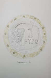 η μαθήτρια Τσιμπούκα Ζωή του τμήματος Α’3 ζωγράφισε το 1 (ένα) ευρώ, αφού έμαθε ότι είναι η μία όψη του τετράδραχμου της Αρχαίας Αθήνας.